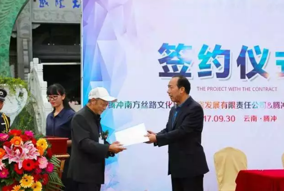金秋時(shí)節(jié),騰沖南方絲路旅游投資發(fā)展有限公司和騰沖市騰沖翡翠加工基地,簽署戰(zhàn)略合作協(xié)議。為示祝賀,云南省寶協(xié)專(zhuān)家委員會(huì)主任,肖永福先生贈(zèng)送其親撰《翡翠大辭典》部分手稿及親繪《牡丹長(zhǎng)卷》給翡翠博物館收藏展示。