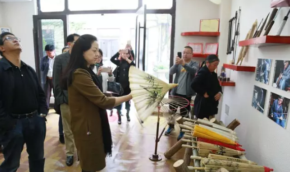 胡部長一行重點對進駐園區的騰沖非物質文化遺產——孫氏土陶館、滎陽油紙傘、騰沖養藝坊、絨藤閣、騰躍步步順和劉永周皮影進行了參觀和指導。