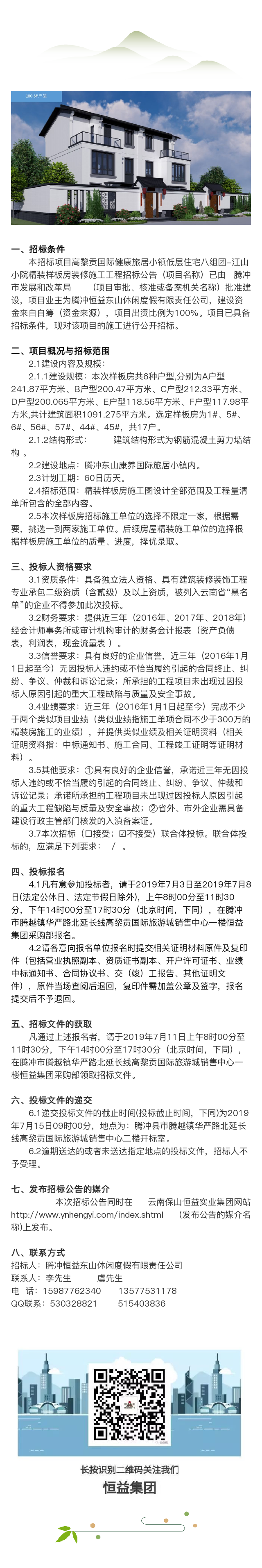 高黎貢國際健康旅居小鎮低層住宅八組團-江山小院精裝樣板房裝修施工工程招標公告