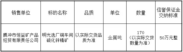 騰沖市恒益礦產品經貿有限責任公司關于鋅精礦競價銷售公告(202306)號