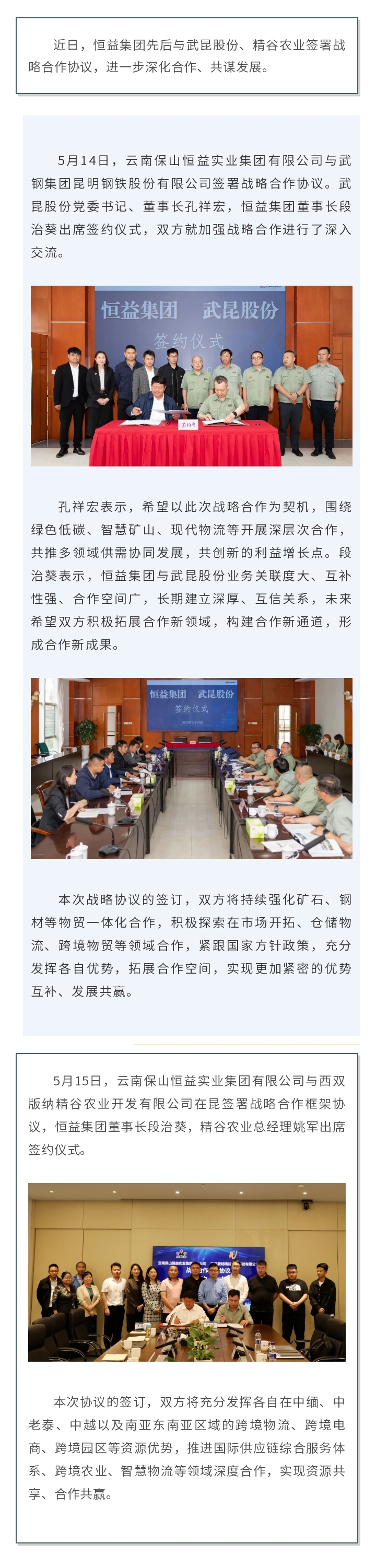 恒益集團分別與武昆股份、精谷農(nóng)業(yè)簽署合作協(xié)議 來源: 瀏覽量:5408 日期:2024-05-16 分享到: 上一篇:云南省商務廳副廳長馬俊一行蒞臨恒益集團物流項目調(diào)研指導 下一篇:“知見行杯·奔跑吧少年”2024年騰沖市第七屆小學生校園籃球聯(lián)賽圓滿落幕