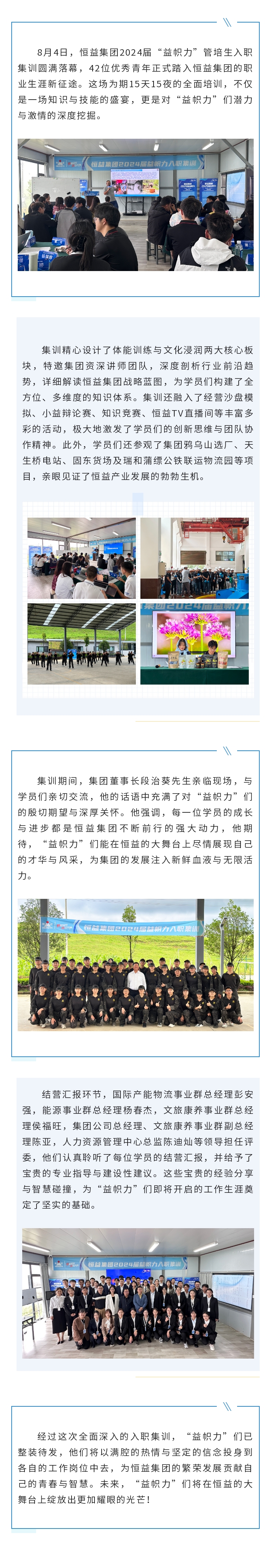 恒星耀夢 益往無前丨恒益集團2024屆“益幟力”入職集訓圓滿結束 來源: 瀏覽量:5134 日期:2024-08-06 分享到: 上一篇:恒益集團攜手北京知見行公益基金會捐贈150萬元恒育助教金 下一篇:馬來西亞-中國(云南)貿易投資推介會在昆隆重舉行