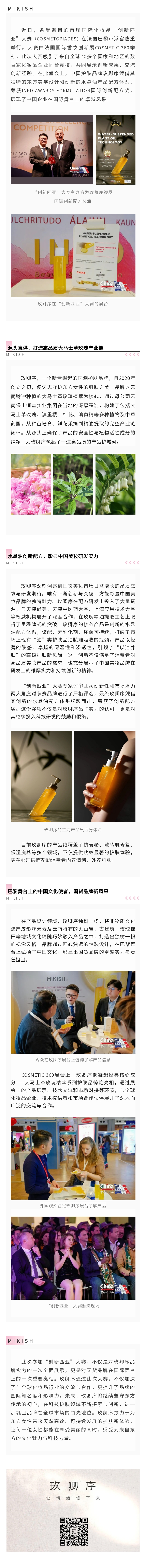 國貨品牌玫卿序閃耀巴黎“創新匹亞”大賽,榮獲INPD國際創新配方獎 來源: 瀏覽量:4896 日期:2024-10-22 分享到: 上一篇:跟著賽事去旅行丨恒益康旅福利大放送,@高黎貢超級山徑賽參賽選手們 下一篇:助企幫扶丨昆明海關工作組一行蒞臨恒益集團調研指導
