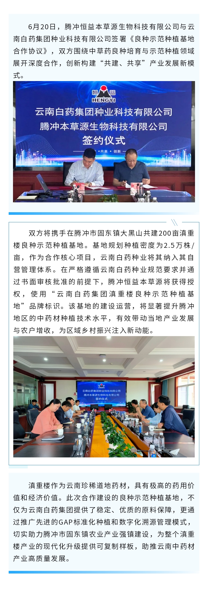 恒益本草源與云南白藥種業(yè)簽署合作協(xié)議