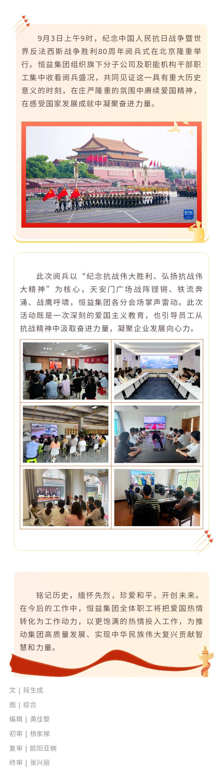 銘記榮光,凝聚力量丨恒益集團組織集中收看抗戰勝利80周年閱兵盛況