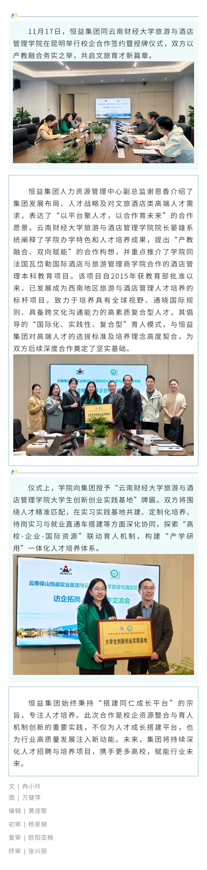 恒益集團與云南財經大學簽約授牌 共啟文旅育才新篇章