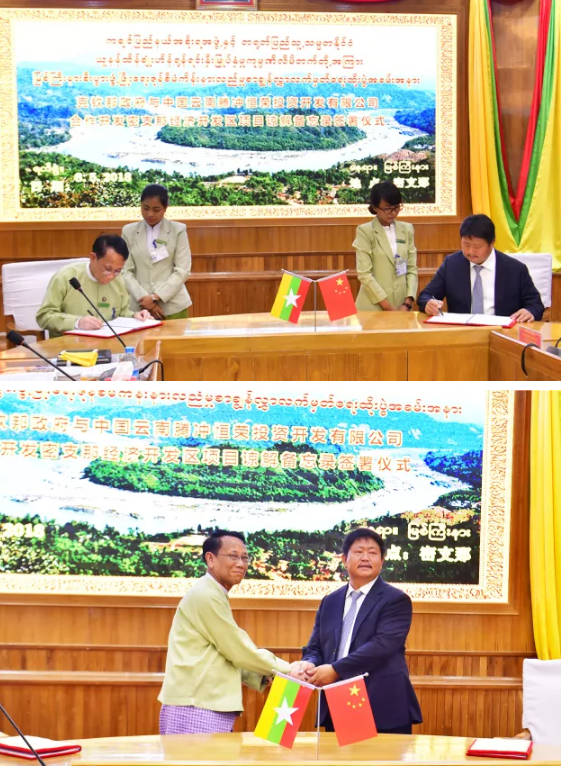 熱烈祝賀緬甸克欽邦與恒榮公司簽署密支那經(jīng)濟(jì)開發(fā)區(qū)合作諒解備忘錄